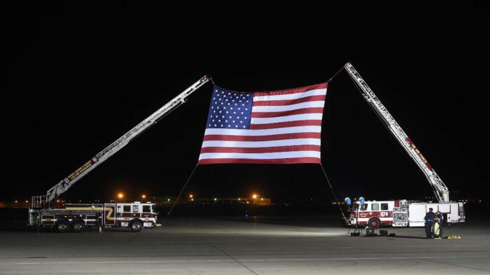 Peu avant 3 heures du matin (7 heures GMT), le président et la Première dame, Melania Trump, sont montés à bord de l'avion dans lequel venaient d'arriver les trois hommes sur la base militaire d'Andrews, près de Washington, où un immense drapeau américain avait été déployé.