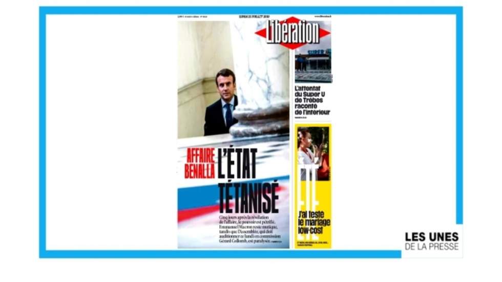Cinq jours après la révélation de l’affaire Benalla, c'est l’"État qui est tétanisé", titre Libération. Emmanuel Macron reste "mutique" face à "ce scandale d’État". Pour l’Opinion, ce silence "fait du bruit", notamment à l’Assemblée nationake, où les travaux de sur la réforme constitutionnelle sont suspendus depuis quatre jours aux questions sans réponse du chef de l’État.