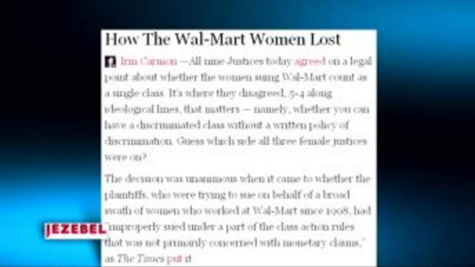 Et puis outre-Atlantique, une décision est entrain de faire beaucoup de bruit, il s’agit de l’annulation par la Cour suprême américaine de la plainte portée contre les supermarchés Wal-Mart par un million et demi de salariées, des femmes qui se disent victimes de discriminations salariales.