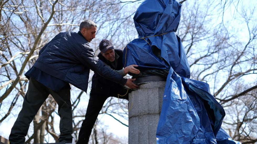 Il n'aura pas tenu plus d'une journée. Un buste d'Edward Snowden avait fait son apparition dans un parc de Brooklyn, à New York, lundi 6 avril au matin. Quelques heures plus tard, les autorités l'ont recouvert d'une bâche bleue puis l'ont fait enlever.