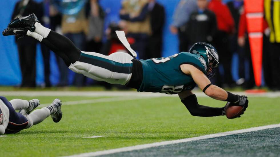 Après avoir passé la soirée à tourner autour de Tom Brady, la défense de Philadelphie, l'une des plus efficaces de la NFL, a fini par l'atteindre à plusieurs reprises en fin de partie. Et sur la dernière action du match, une nuée de défenseurs s'est abattue sur Rob Gronkowski, qui tentait de réceptionner une passe de la dernière chance dans l'en-but, détournant le ballon de ses mains.